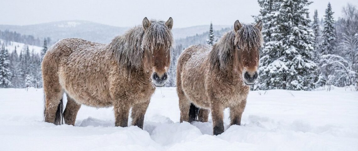 Blana creață a cailor Bashkir nu este doar adorabilă — este o adaptare crucială la temperaturile extreme care pot coborî sub -40 de grade Celsius. Buclele de păr creează buzunare de aer cald care oferă izolație termică superioară. Iarna, blana devine și mai groasă și mai ondulată, iar vara, caii își pierd o parte din blana de iarnă, uneori devenind aproape complet netezi.
