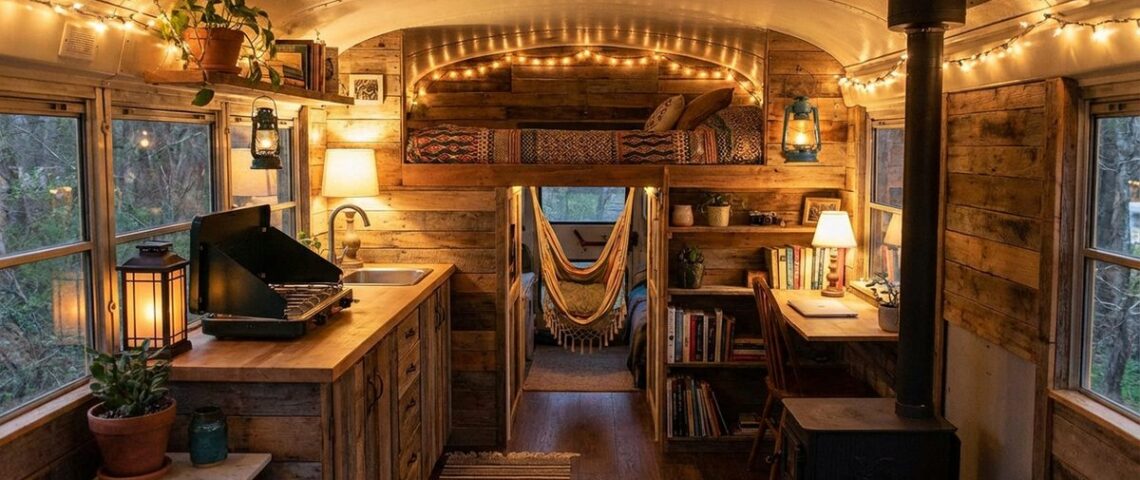Autobuzele școlare americane transformate, numite afectuos skoolies, sunt printre cele mai populare proiecte de conversie. Cu lungimi de 10-12 metri și spații interioare generoase, aceste vehicule oferă suficient loc pentru dormitor, bucătărie, baie și chiar birou. Costul unui proiect complet variază între 15.000 și 50.000 de dolari, o fracțiune din prețul unei case tradiționale.
